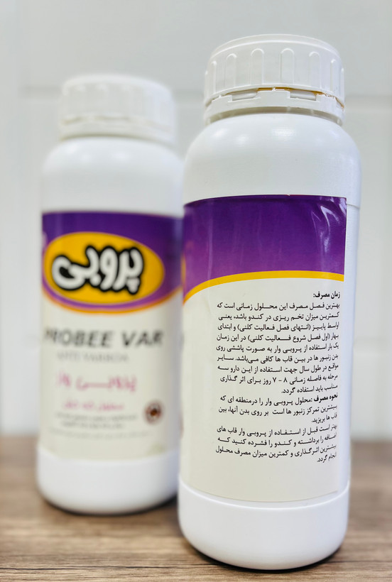 در این زمان یک بار استفاده از پروبی وار به صورت پاششی روی بدن زنبور ها در بین قابها کافی است .
