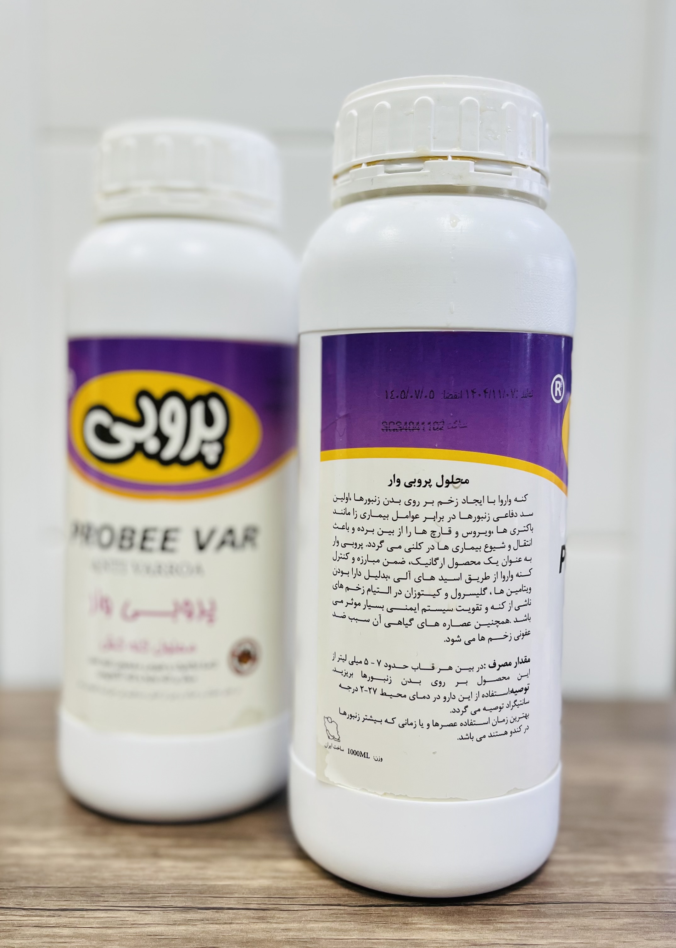 محلول پروبی وار را در منطقه ای که بیشترین تمرکز زنبورها است ، بر روی بدن آنها ، بین قابها بریزید .